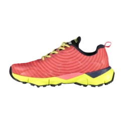 Der neue Vorschlag fu?r den Trail THIAKY kombiniert das trendige Design mit der Leistung, die fu?r bestes Training und Wettbewerbe u?ber kurze bis mittlere Distanzen erforderlich ist. Das Obermaterial aus bedrucktem Gewebe bietet dem Fuß genu?gend Platz, um sein natu?rliches Gleichgewicht zu finden, garantiert aber dank der seitlichen Verstärkungen aus TPU dennoch den richtigen Halt. Die Sohle aus EVA und Gummi CMP FullOnGrip sorgt nicht nur fu?r eine gute Dämpfung, sondern ist dank der Konstruktion der Profilsohle auch in der Lage, Grip und Traktion insbesondere auf schweren und nassen Böden zu garantieren. An der Zunge befindet sich eine Tasche, in der die Schnu?rsenkel nach dem Binden eingefu?hrt werden können.
