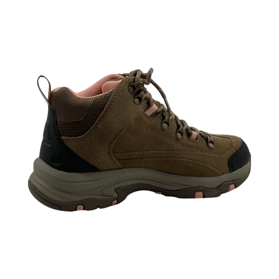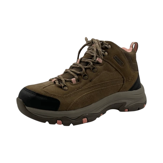 Geh deinen Weg abseits ausgetretener Pfade mit dem robusten wie bequemen SKECHERS Relaxed Fit-Trego – Alpine Trail Stiefel. Wasserdichter, knöchelhoher Hiking-Stiefel zum Schnüren mit einem Obermaterial aus Wildleder, Synthetik und Mesh sowie Ziernähten und Overlay-Akzenten. Einlegesohle aus Air Cooled Memory Foam