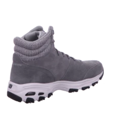 Perfektioniere deinen Look mit dem bequemen SKECHERS D’Lites Stiefel. Legerer wadenhoher Kaltwetterstiefel zum Schnüren mit einem Obermaterial aus weichem Wildleder und gestricktem Stoff sowie Ziernähten und Overlay-Akzenten und einer Warm Tech Memory Foam Einlegesohle.Farbe: grau