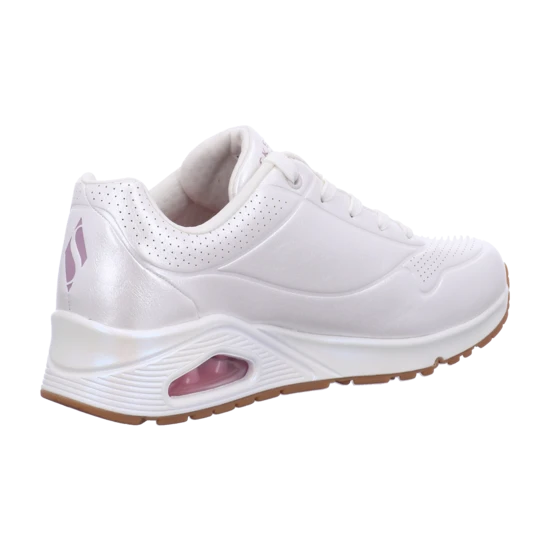 Klassisch-sportlicher Stil mit Glamournote bietet der Skechers Street? Uno ? Pearl Queen Schuh. Modischer Schnürsneaker mit einem Obermaterial aus Synthetik mit Perlenglanz und Perforationen, Air-Cooled Memory Foam Einlegesohle und einer Plateausohle mit sichtbarer Skech-Air Zwischensohle mit Luftkissen-Dämpfung